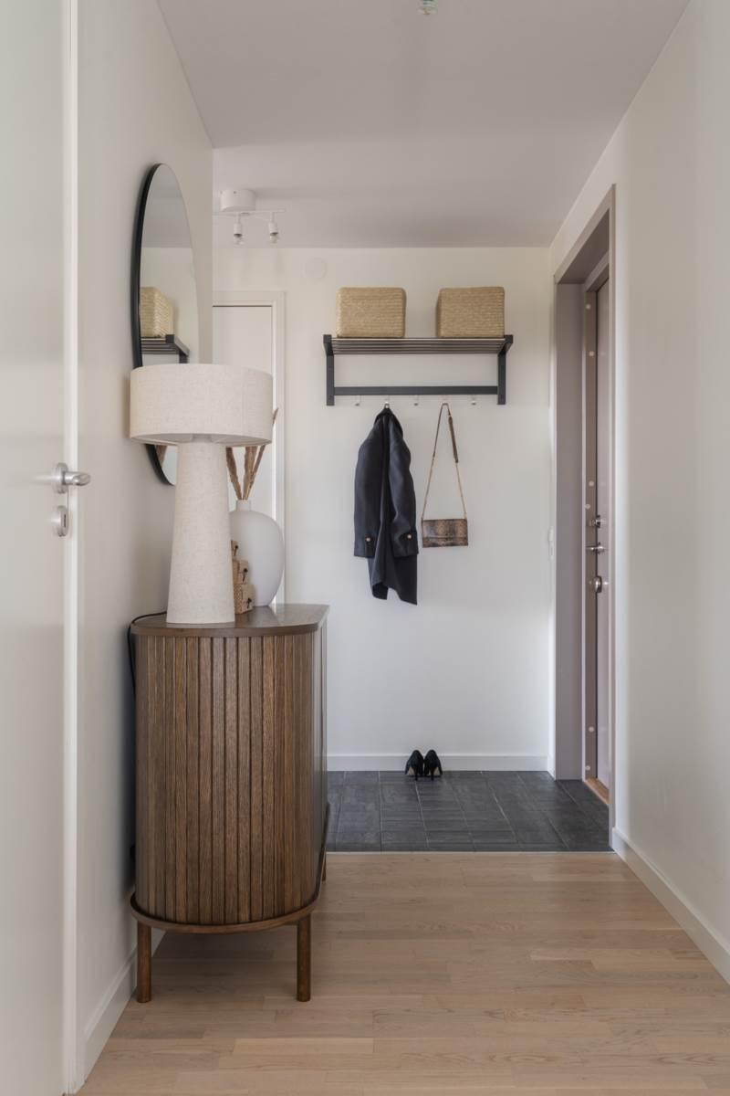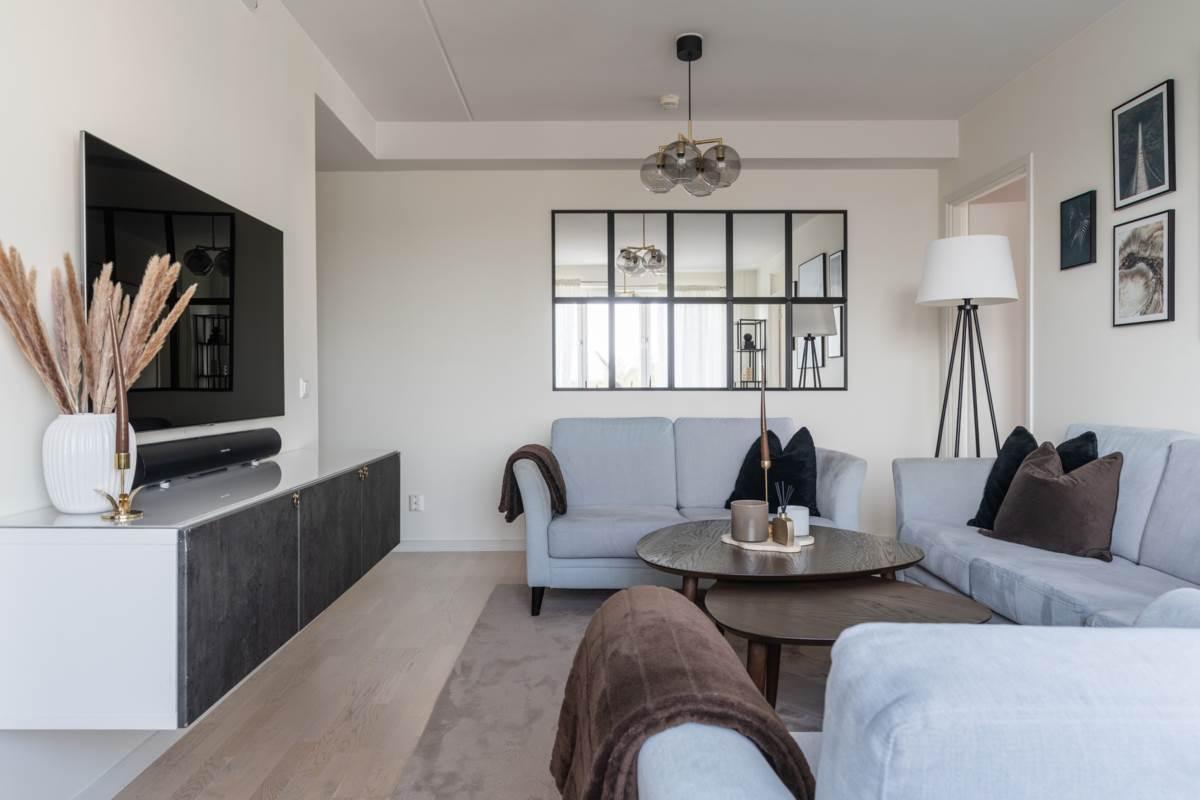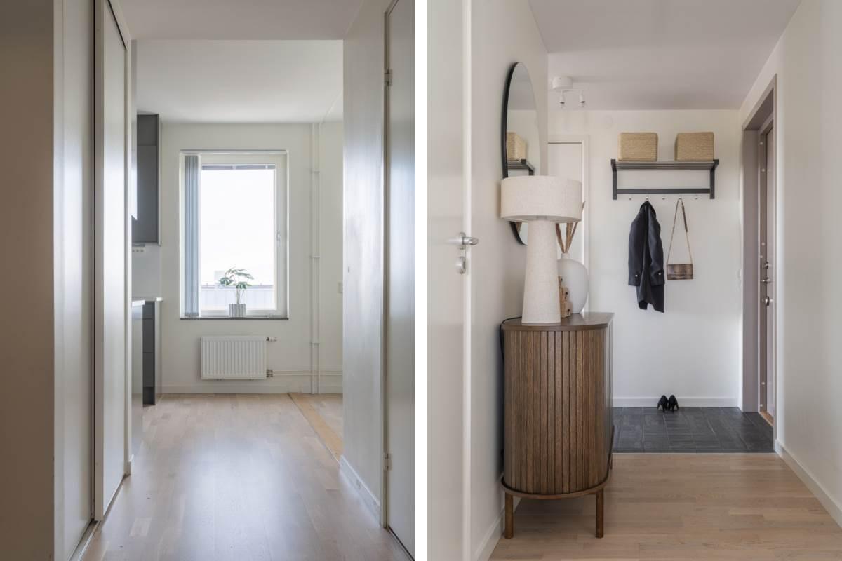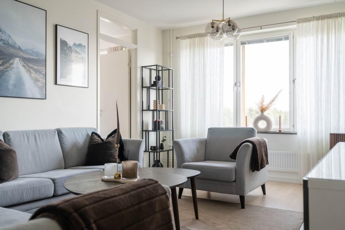 Lägenheten välkomnar dig med en rymlig hall som erbjuder goda förvaringsmöjligheter och ett praktiskt klinkergolv som möter enhetliga och ljusa ytskikt. Det helkaklade badrummet är fräscht och modernt med tvättmaskin och torktumlare, vilket underlättar vardagen ytterligare. Vidare in i bostaden möts du av ett luftigt vardagsrum med plats för både soffgrupp och umgänge. Rummet får fint ljusinsläpp från stora fönsterpartier och har en trevlig känsla av rymd.