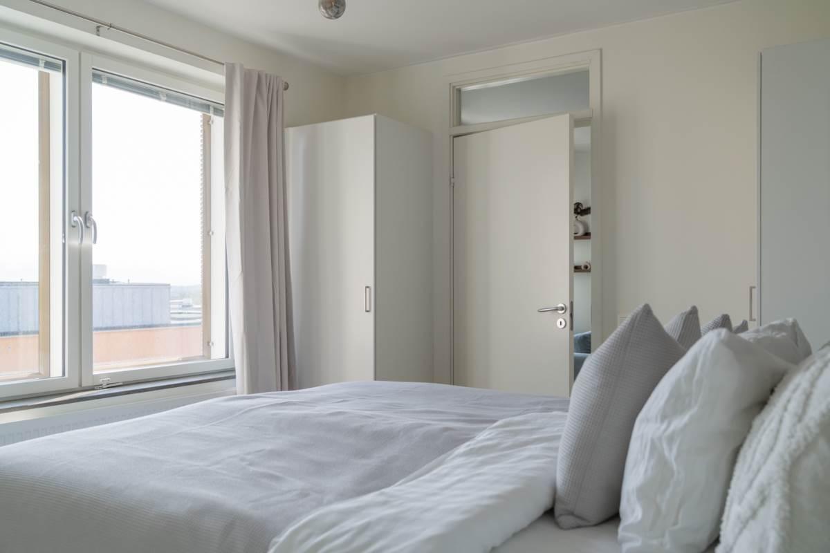 Det större av bostadens två sovrum erbjuder gott om plats för dubbelsäng och förvaring, medan det mindre sovrummet fungerar utmärkt som barnrum, gästrum eller kontor – beroende på dina behov. Lägenheten har dessutom en andra balkong, vilket gör att du kan njuta av solens strålar från olika väderstreck och skapa flera mysiga utemiljöer.
