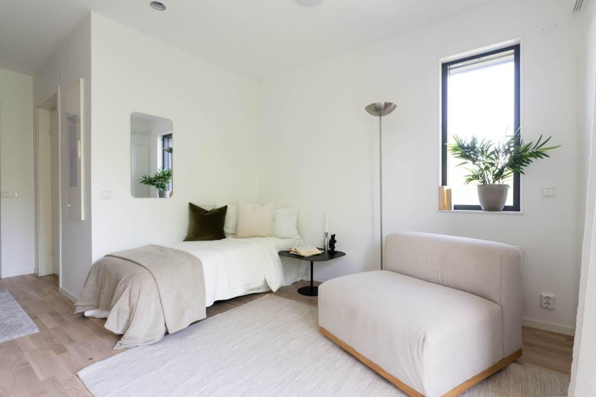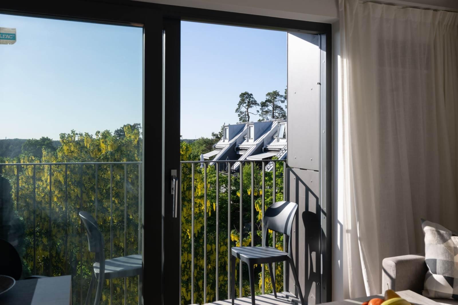 - Stort glasparti med skjutdörr till en liten balkong, vilket ger ett härligt ljusinsläpp